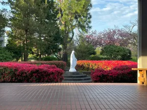 寄宿舎玄関前のマリアガーデンも、満開に😊