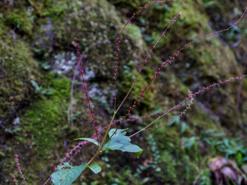 "Mizuhiki" plants are in bloom. They are perennial plants in the Polygonaceae family that commonly grow along forest edges. The name comes from the fact that their long spikes lined with tiny red flowers look like Mizuhiki, which is a traditional Japanese decorative cord.