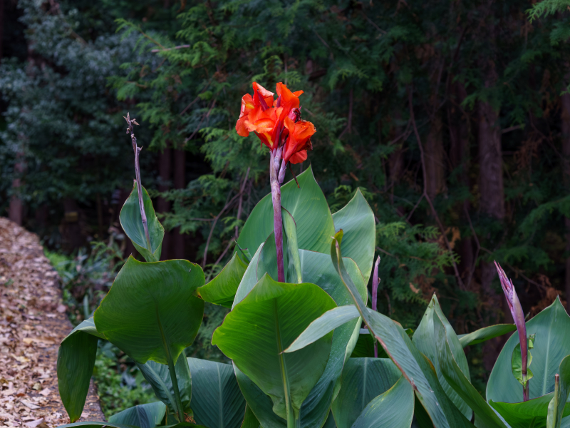 "Hana-Kanna" plants are in bloom. They are perennial plants in the Cannaceae family that are commonly grown in gardens. Their usual flowering season is from summer to fall. In winter, the parts above the ground die back, but this plant is still flowering even in December.