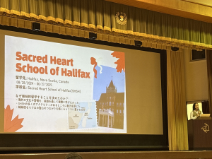 学校説明会の後に、Global Career発表会が行われました。この発表会では、生徒が様々な海外体験プログラムに参加し、学んだこと・感じたことをプレゼンテーション形式で全校生徒の前で発表します。主な内容としては姉妹校をはじめとする海外留学、夏休み中に実施されたタイスタディツアーやフィリピン体験学習、SOFIS(三光町(東京聖心)、小林、不二、インターナショナルスクール、札幌の姉妹校の総称)によるワークショップへの参加など、様々なプログラムを聖心グループでは実施しています。
