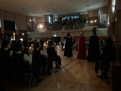 クリスマスキャロルのリハーサルが行われました。本番同様に真剣に行い、今までの練習の成果を披露しました。