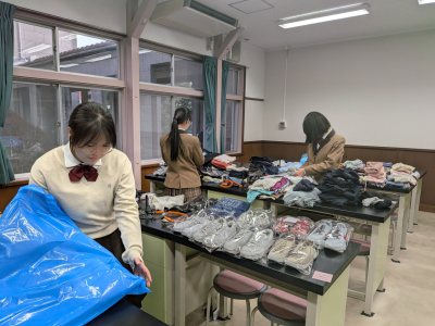 フィリピン体験学習に参加した生徒と、自主活動団体「Dear World」のメンバーが、長年フィリピンで支援活動を行っておられるシスター有田のご依頼を受け、「フィリピンに支援物資を届けよう!」というキャンペーンを実施しました。保護者・生徒の皆様の温かいご協力により、夏用衣類、バッグ、靴、タオル、文具など合計628点の支援物資が、わずか1か月で集まりました。これらの物資は、40kgの段ボール2箱に分けて、船便にてフィリピンへ送付いたしました。