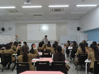 2月4日、Woven by Toyotaによる出前授業が中学3年生を対象に行われました。はじめに、実証実験の街Woven Cityについて話を伺い、その後、グループに分かれて身の回りの人が想定される困難に対して、どのような開発で助けることができるかアイデアを考えました。生徒からは、「洗濯物を自動で畳める機械があればいい!」、「自動で料理を作ってくれる機械があればいい!」など、様々なアイデアが出されました。Woven Cityが大切にする「自分以外の誰かのために」という想いは、聖心女子学院の「よりよい社会を築くことに貢献する賢明な女性の育成をめざす」という教育理念と共通するものがあり、誰かのことを想うことがよりよい社会への第一歩になることを学びました。