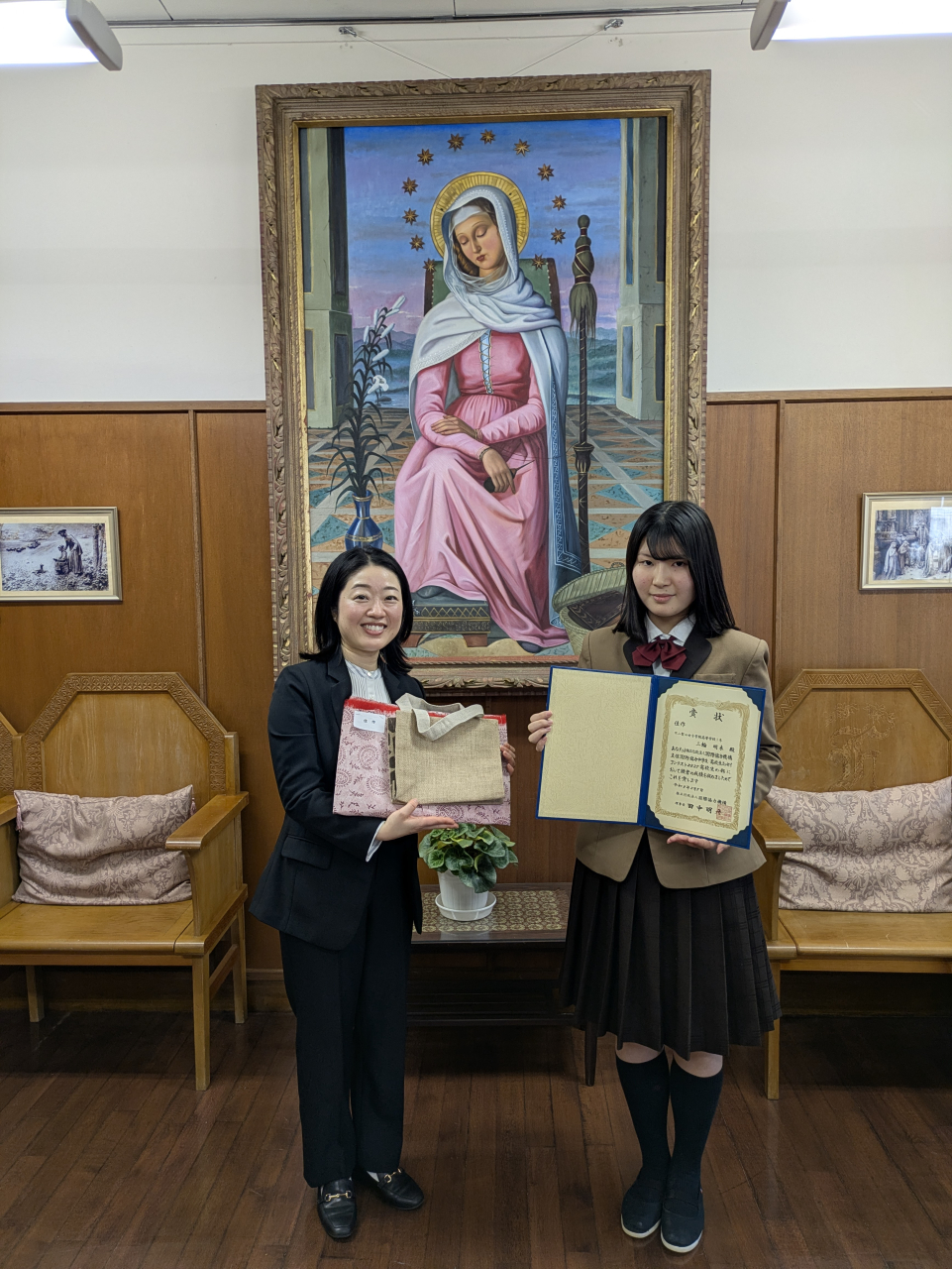 「JICA主催 国際協力中学生・高校生エッセイコンテスト2025」において、高校1年生が入賞いたしました。本日、JICAの静岡県国際協力推進員の方が表彰のためにご来校くださいました。表彰式後には、JICAの具体的な活動について直接お話を伺うことができました。また、「どのような領域に関心が強いかわからないから」と、多岐にわたる分野の広報誌を数冊携えてきてくださるなど、温かなお心遣いもいただき、受賞生徒は感激していました。