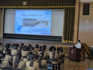 質疑応答の時間には、生徒一人ひとりの質問に対して、優しく、そして力強いアドバイスをいただきました。世界を舞台に活躍する阿部様の言葉は、生徒たちにとって、大きな勇気と刺激になったはずです。