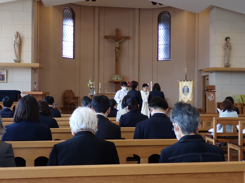 4月6日に新年度職員ミサが行われました。今年度、不二聖心の教育に携わるすべての教職員が集まり、祈りをささげました。いよいよ明日から生徒たちが学院に集います。今年度の不二聖心の活動が神様に見守られ、生徒たちに豊かな学びがありますように。