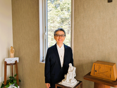 不二聖心には、「チャプレン」の神父様がいます。宗教行事の指導や、カトリック信者の生徒の集まり、希望する生徒のための聖書の勉強会などを担当してくださっています。