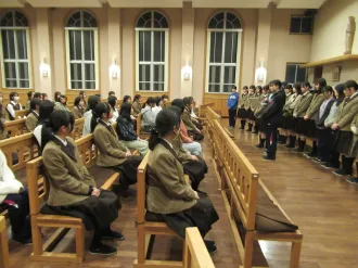 卒業目前の高3が、語りかけます。 「ひとつ ひとつの行動が、寄宿舎生活をつくっています。 他者への礼儀正しさと、おもいやりを持ち続けてください。」 静かに聞き入る下級生たち。 こうして、寄宿舎セントマドレーヌの伝統が 続いていくのです✨
