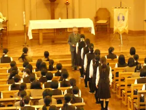 お聖堂に集い、蒔苗校長から任命状を受け取りました。