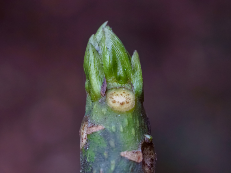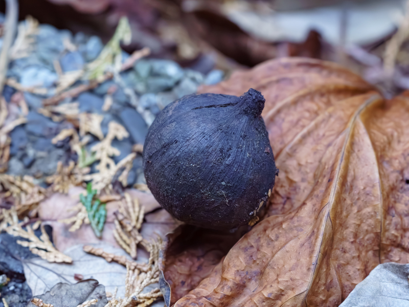 クロヤツシロランが種子を飛ばしていました。養分を完全に菌類から得ているラン科の多年草です。秋に咲く花は地上から数センチの高さしかなくあまり目立ちませんが、花のあと花柄が急速に伸び、ほこりのような細かい種子を放出します。