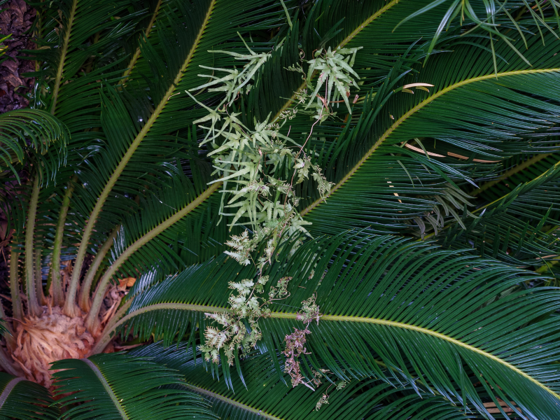 カニクサが胞子葉をつけています。林縁などに見られるカニクサ科のシダ植物です。和名は、つる状に伸びる硬い葉軸をカニを釣るのに利用したことに由来するようです。