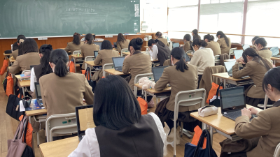 第3回英語検定に向けて、ライティング問題の練習に取り組んでいます。英文エッセイの構成などを英語の授業で学んだ後、各自が受験する級に応じて、練習問題をPC上で解いています。英検1級を取得済みの生徒や留学を希望する生徒は、IELTSの問題に取り組んでいます。フィードバッグを参考に、さらによい英文を自分自身の力で書けるようになることを目指します。