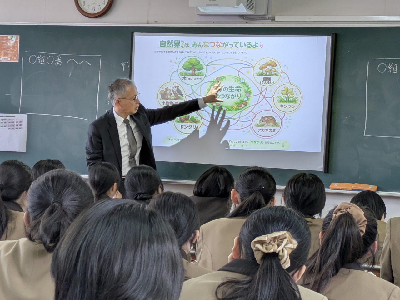 高校1年生の「総合探究~ESD~」が本格的にスタートしました。初回は校長先生より、1年間の学びの流れや探究活動を通して大切にしてほしいことについてガイダンスが行われました。そして今回は、NPO法人「土に還る 木森づくりの会」の皆さまにご指導いただき、間伐材を使ったプレート作りに挑戦しました。生徒たちは木の香りや感触を楽しみながら、この1年の学びに思いを馳せ、それぞれが素敵なプレートを作り上げていました。
