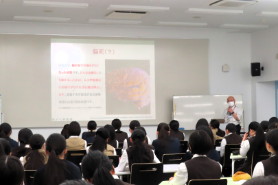 10月14日、中学3年生は宗教の授業で、藤田医科大学(愛知県豊明市)より医学部循環器内科学講座重症心不全分野の教授でいらっしゃる簗瀬正伸先生にお越しいただき、「一人の医療者として命と向き合う」というテーマでお話いただきました。簗瀬先生は長らく心臓移植や人工心臓の研究と臨床に携わっており、命とまっすぐ向き合っていく医療のありかたについてお話をお伺いすることができました。生徒たちは、重い話もありながらも興味深く話を聞き、命の尊さや医療が目指していく姿について深く考えていくことができました。