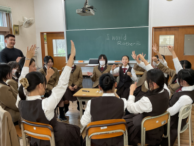 11月10日の放課後、英語のネイティブの先生が英語で会話を楽しむイベントを企画してくださいました。中学3年生の生徒が集まり、カードに書かれたテーマについて、英語でさまざまな会話をすることができました。英語に自信がなくてもまずは話していき、お互いに共感しあうことを通して、楽しく英語で会話ができたようです。