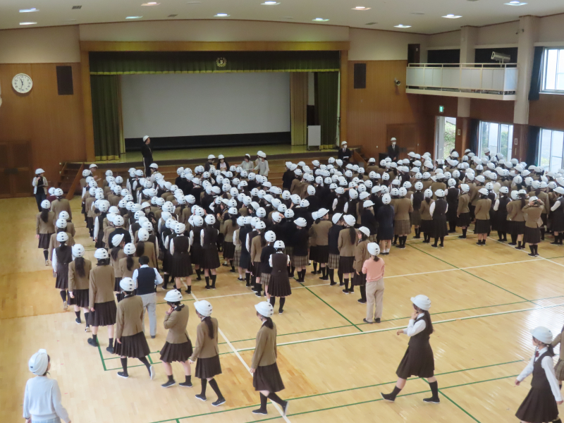 4月30日に全校で地震避難訓練が行われました。今回は降雨時の訓練だったため、グラウンドではなく講堂に避難しました。また、その後には今年度最初の避難生活体制ミーティングが行われ、顔合わせと役割分担の確認をしました。最近は日本各地で地震が発生していますが、今回の訓練を生かして、緊急時にも冷静に避難できるようにしていきたいですね。